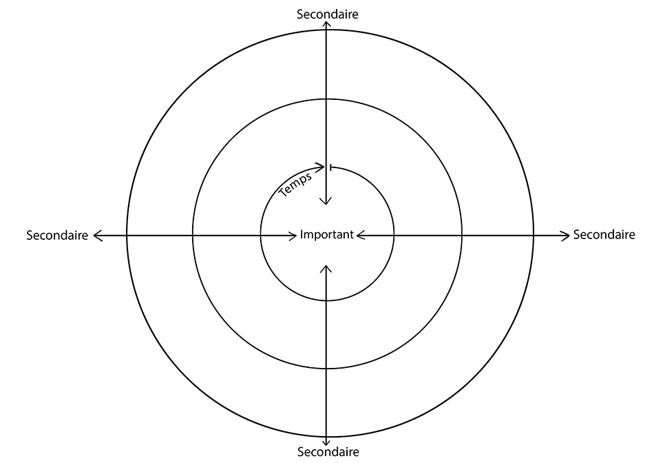 Au centre, vous avez ce qui est important et plus vous vous éloignez, plus cela devient secondaire. On peut même imaginer que sur les bords, il y a les tâches à éviter.