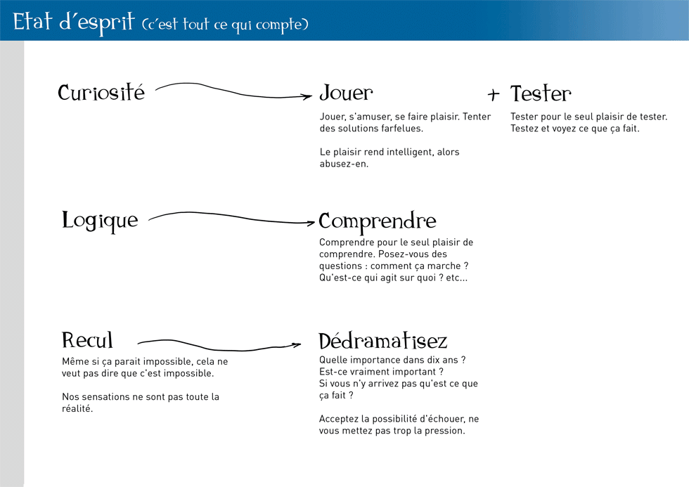 Vous avez tout le détail dans l'infographie sur la résolution de problème. Et si vous cherchez plus à travailler sur l'inspiration à proprement parler, découvrez la gestion des modes mentaux.