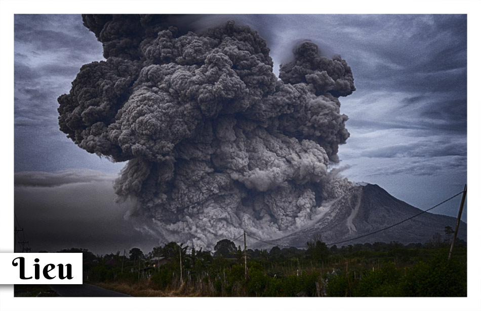 Par exemple, je peux m’imaginer au plus proche de ce volcan. Il fait très chaud et une odeur de cendre flotte dans les airs. Vous voyez, même si je ne connais pas la véritable odeur d’un volcan, je peux inventer, j’ai le droit de me tromper.