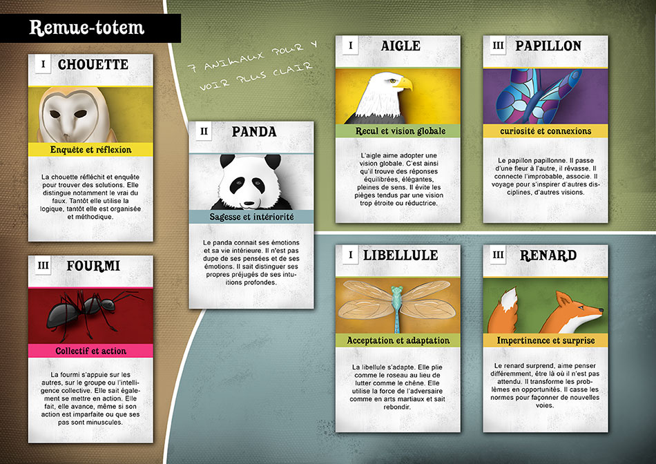 Le Remue-totem vous aide à identifier les bonnes attitudes, chacune étant représentée par un animal totem. Je vous fournis tout dans la suite.