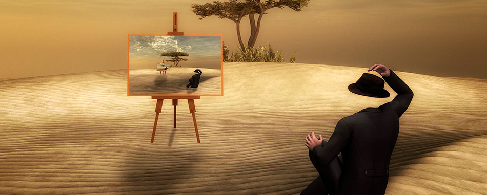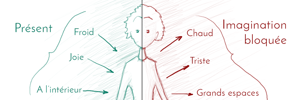 Allez voir plus loin. Concevez ce qui n’est pas là. Vous avez chaud, imaginez ce que ça fait d’avoir froid. Si vous êtes à l’intérieur, imaginez des grandes plaines. Si vous entendez des bruits de voiture, imaginez ce que c’est d’être sous une cascade.