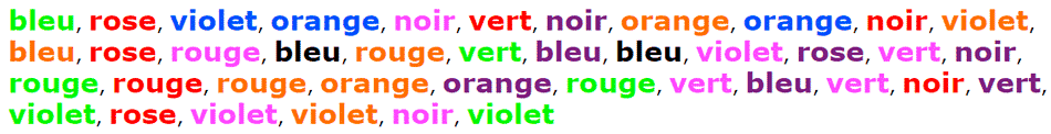 Pour vous en rendre compte, voici une illustration. Quelle est la couleur de ces mots ?