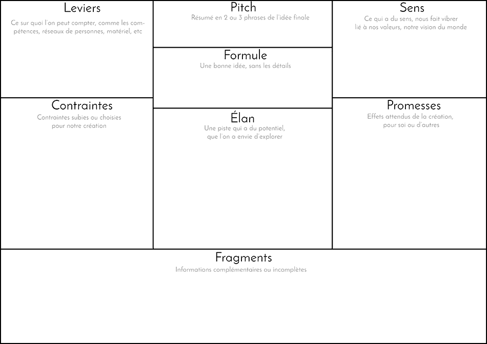 Bienvenue dans le monde du Creation canvas. Cet outil vous permettra d’avancer quand vous bloquez sur votre idée. Petit pas après petit pas, vous allez construire votre idée. En tâtonnant certes, mais dans la bonne direction.