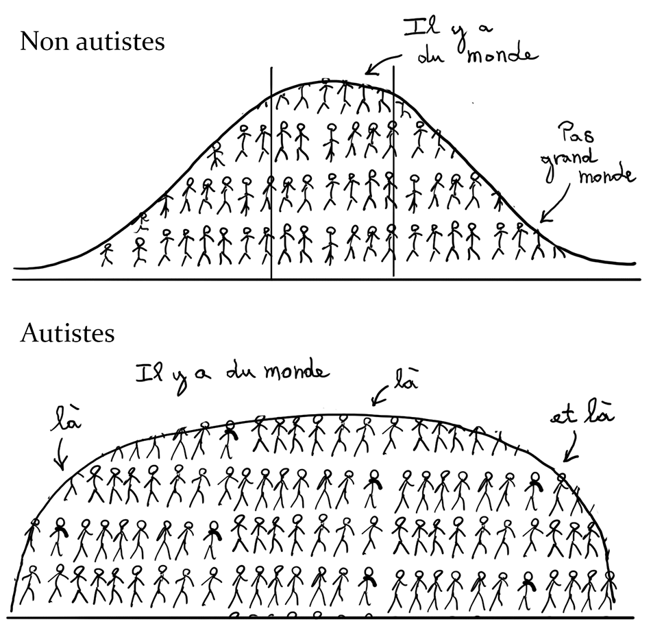 Pour les personnes atypiques, c'est la même chose. Les gens sont tous uniques, mais avec un fonctionnement qui correspond pour la majorité à un moteur de voiture. Et de temps en temps, vous tombez sur des moteurs de bateaux, d'avions, de mobylettes, etc. Mais comme c'est rare, les présupposés restent toujours calqués sur ceux des voitures.